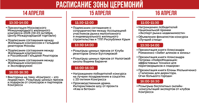 Расписание зоны церемоний