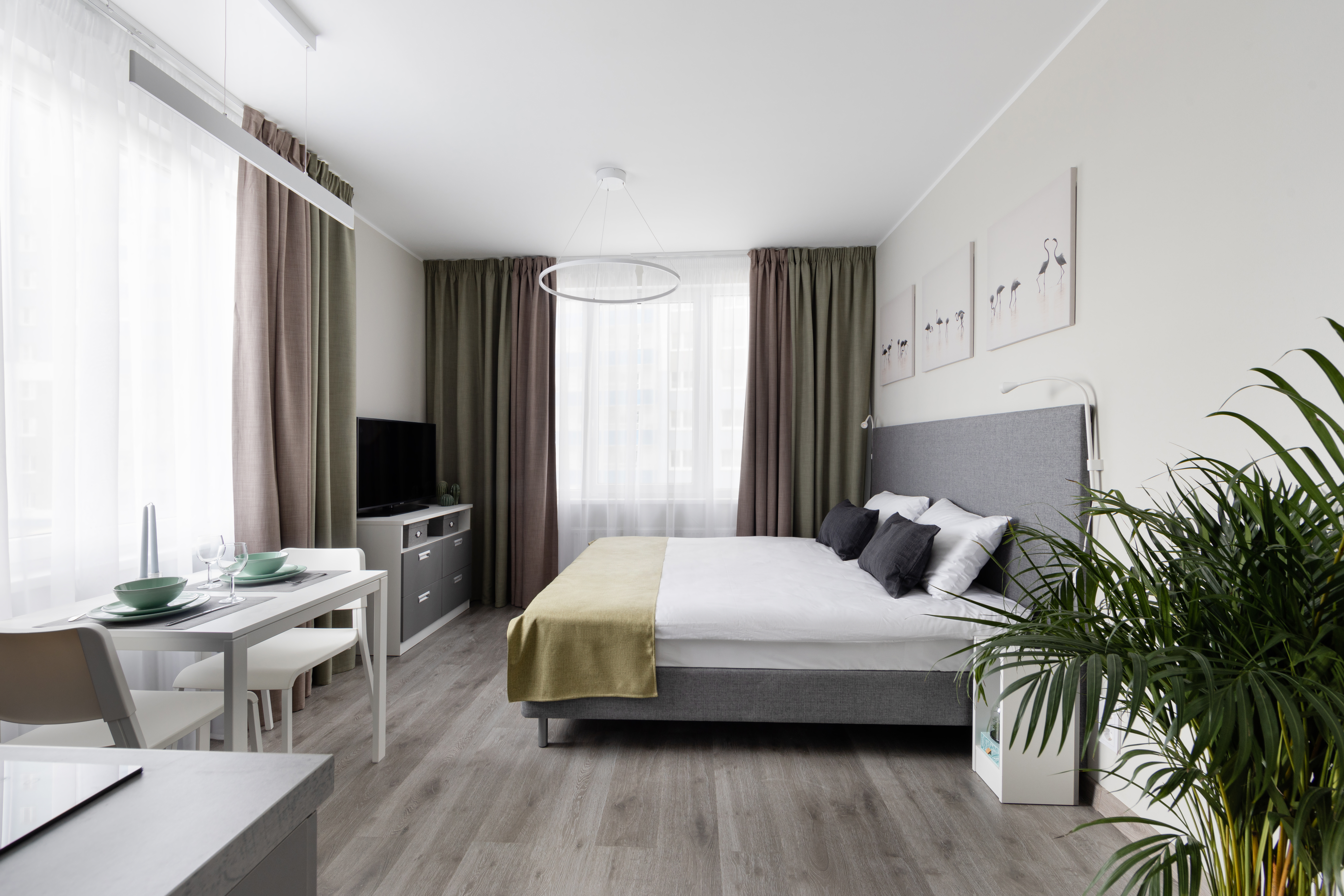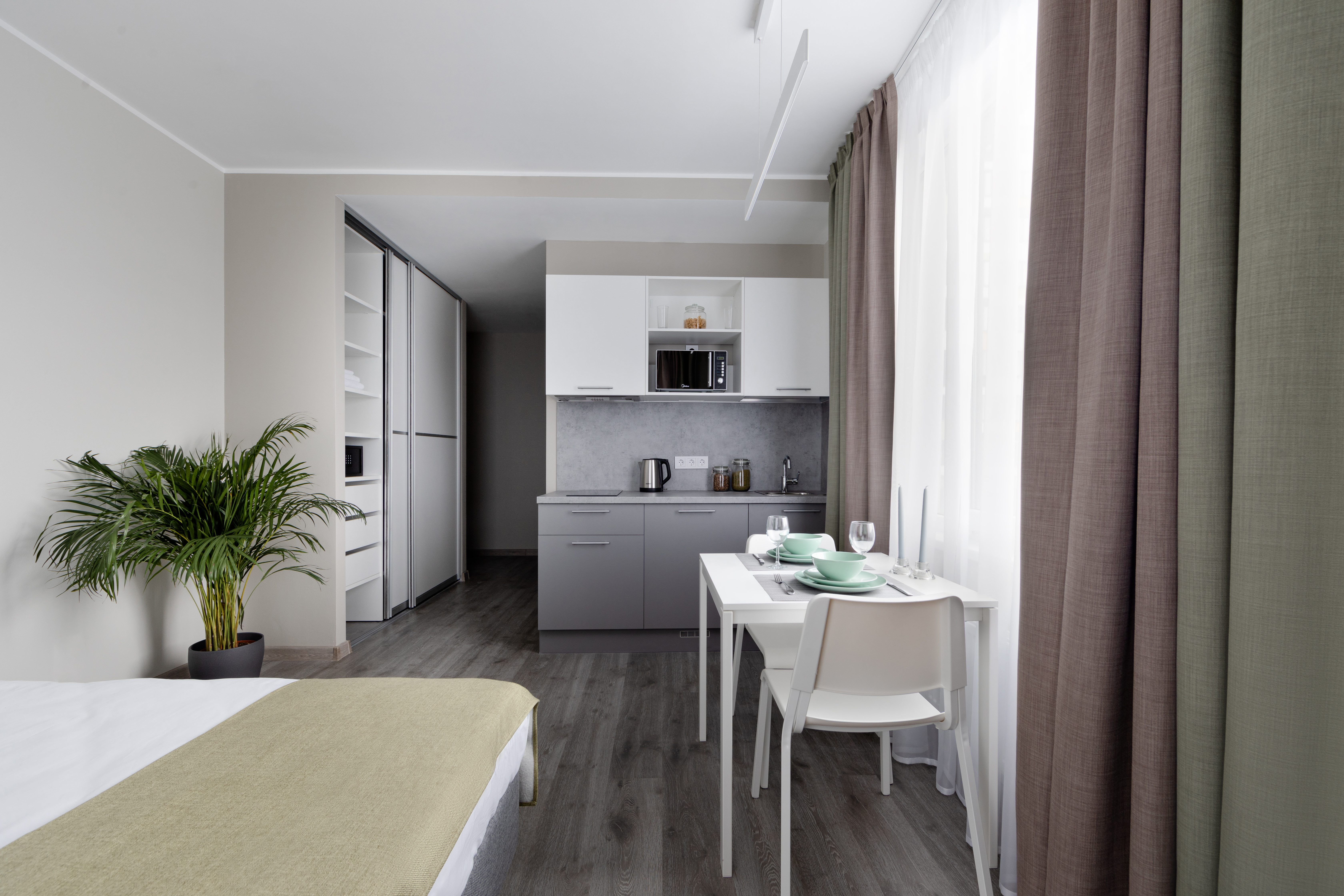 Каждый номер апарт-отеля оснащен всеми необходимыми удобствами, включая кухню с холодильником, микроволновой печью, варочной поверхностью и чайником. Гости могут насладиться приготовленной едой самостоятельно или воспользоваться услугами ресторана «На высоте». Кроме того, в вашем распоряжении фитнес-зал и коворкинг. Посвятите себя тому, что важно, обо всём остальном позаботится IN2IT.